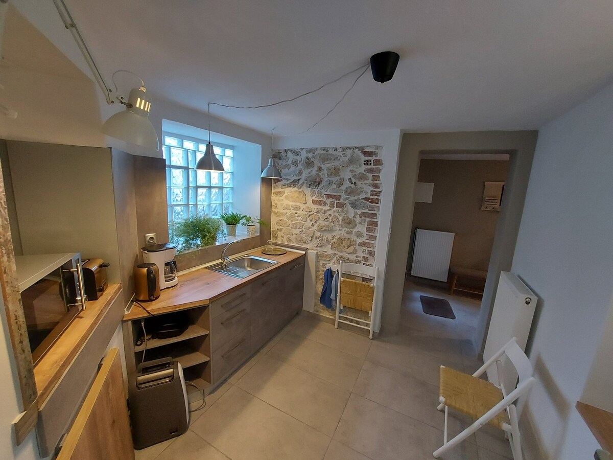 Casarão de pedra acolhedor no alto da colina, a 550 metros do aquário e do lago. Um espaço ideal para descansar para uma família com filhos ou para amigos após uma caminhada. Espaço de trabalho para nómadas digitais. Apartamento confortável e luminoso com dois quartos e uma cozinha totalmente equipada, situado no rés-do-chão e com um pátio com vista para o lago e para as montanhas. Existem muitos livros, jogos e jogos de tabuleiro, Wi-Fi por fibra ótica, televisão e aquecimento com convetor. Estacionamento fácil na rua larga, é possível deixar uma máquina no quintal.