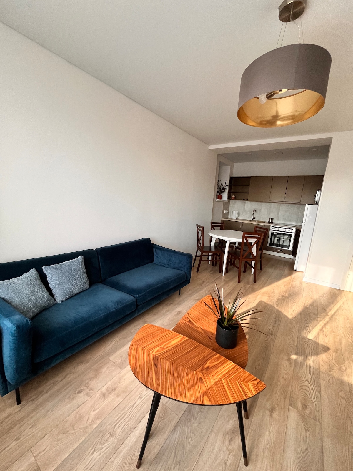 Oi O apartamento fica no meio da rua principal Kaunas. Excelente lugar para viver, quase todas as atracções turísticas, teatros, universidades, cidade velha fica a uma curta caminhada. Também é muito tranquilo à noite. O apartamento está totalmente equipado, na cozinha há tudo o que necessita, também máquina de lavar louça e máquina de café. A entrada do apartamento é segura. Existem dois quartos com camas de casal e sofá-cama na sala de estar, que se transforma numa confortável cama de casal.