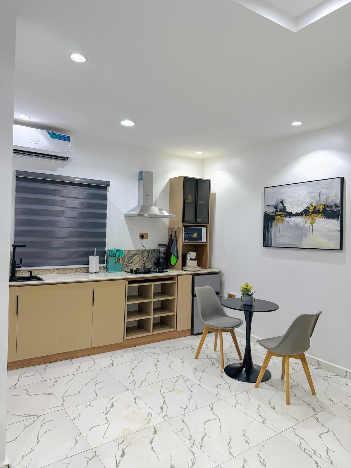 Apartamento de 3 quartos cuidadosamente mobilado numa propriedade privilegiada e bem planeada em Wuye, Abuja. Cada quarto tem um espaço de trabalho dedicado com mesas e assentos adequados, ideal para viajantes de negócios, trabalho remoto e estadias longas. Desfrute de interiores calmos e modernos, uma cozinha totalmente equipada e uma kitchenette, energia e água fiáveis e um ambiente seguro e sereno com fácil acesso às principais áreas de negócios e estilo de vida. Concebido para o conforto, a produtividade e uma verdadeira experiência de boas-vindas.