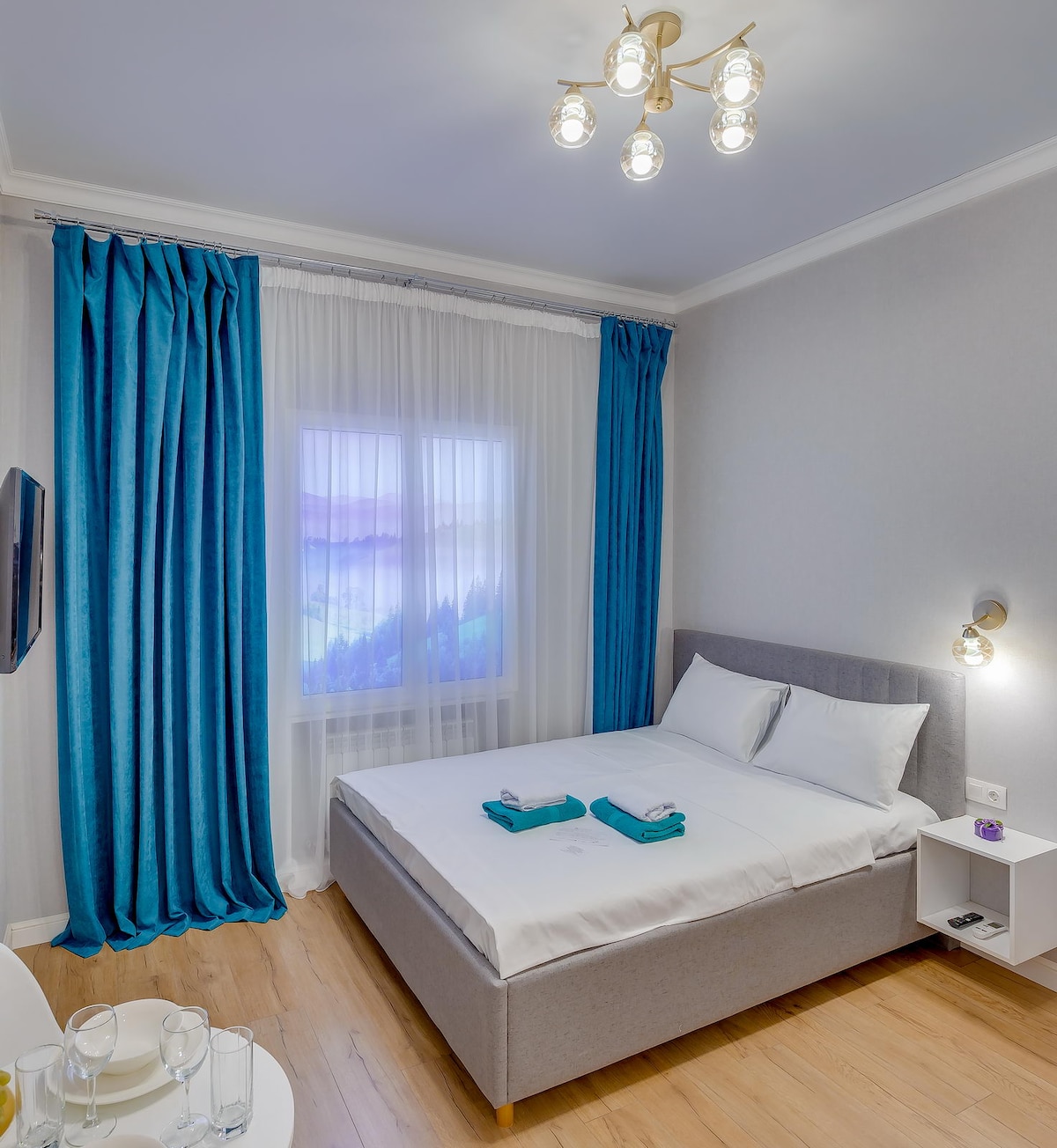 Um quarto luminoso, elegante e luxuoso num apart-hotel de estilo barroco, com uma casa de banho privativa, sanita e bidé. O interior bem pensado cria um ambiente acolhedor e confortável, e a disposição espaçosa permite-lhe sentir-se o mais livre possível. A escolha ideal para umas férias ou uma viagem de negócios no centro de Almaty, combinando privacidade, conforto e um estilo elegante. Todas as atrações importantes da cidade ficam nas proximidades.