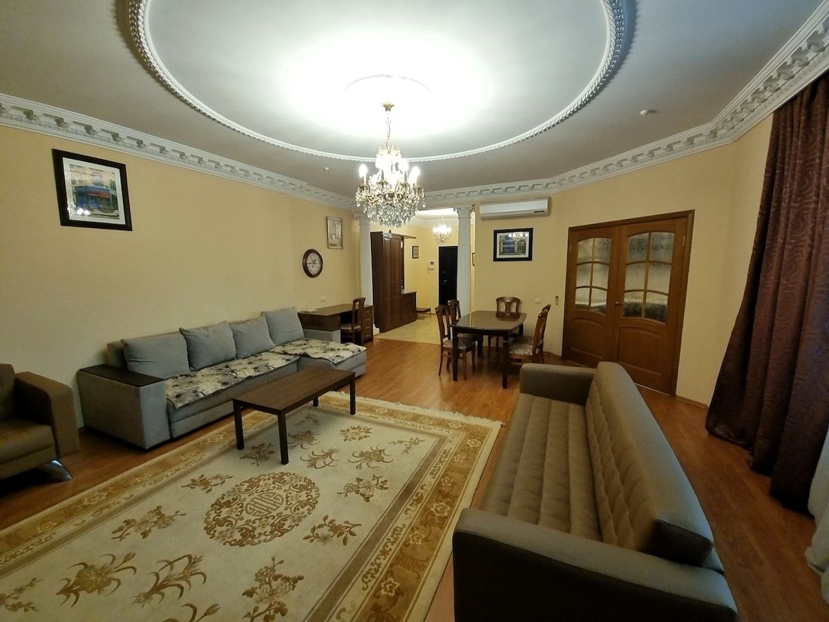 Somos uma família local que oferece o seu espaçoso apartamento de 220 m² perto do Estádio Central, perfeito para famílias ou grupos. Tem 3 quartos, uma sala de estar, cozinha, área de refeições, 3 casas de banho, 3 varandas, 2 armários e 7 camas - num complexo de elite seguro no centro da cidade. Conosco, não vai apenas alugar um apartamento, mas terá as melhores memórias de Almaty: a minha mãe pode recebê-lo com refeições caseiras e o meu pai pode buscá-lo no aeroporto. Envie-me uma mensagem aqui caso tenha alguma dúvida e seja bem-vindo!