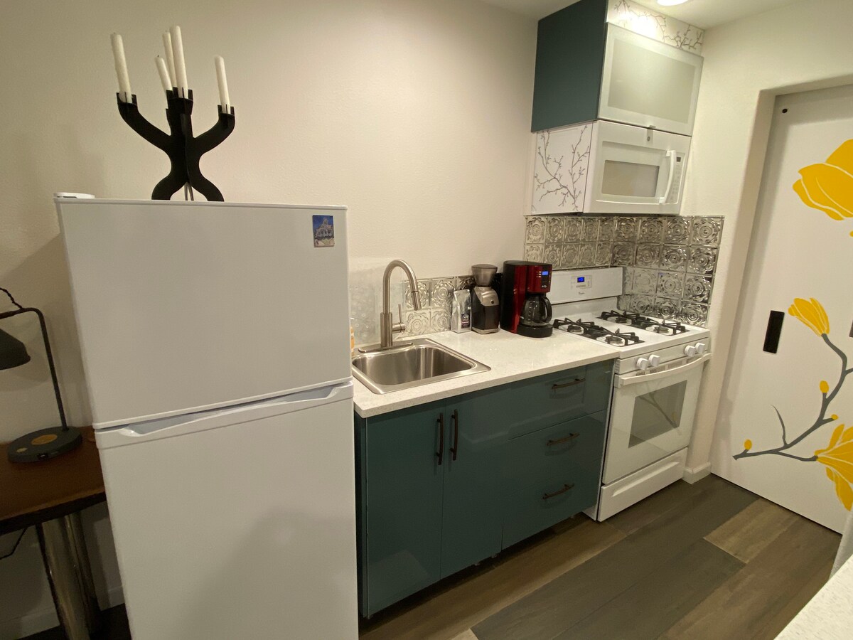 Estúdio de hóspedes limpo e privativo com cozinha abastecida com água e lanches de chegada, chá e café. O estúdio tem cama queen size e 2 colchões de chão. A TV pode ser usada para assistir Netflix. Muito perto do centro da cidade, Universidade de Willamette, feiras e edifícios estaduais que ficam a apenas uma milha de distância. Estacionamento na garagem mais próxima do meu vizinho da porta dos fundos é fornecido. Pequeno quintal lateral. Desculpe, não aceitamos mais gatos.