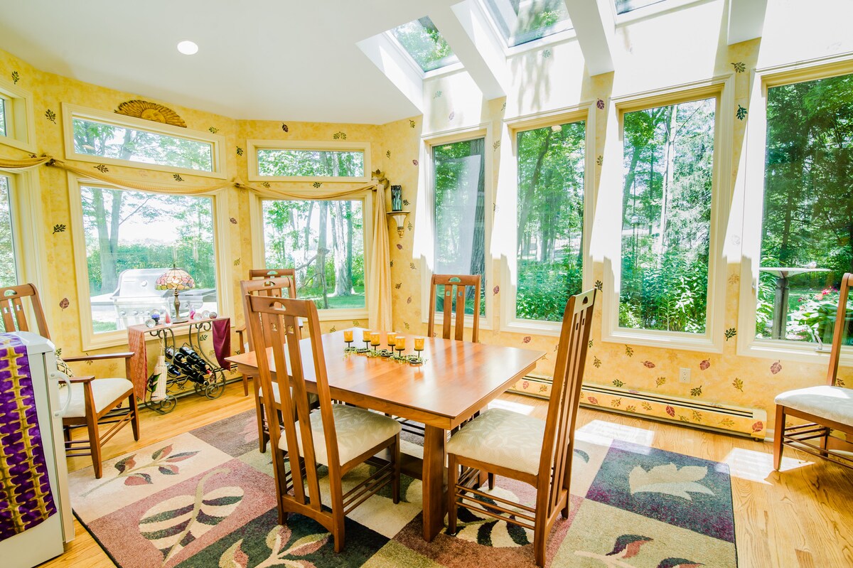 Poolside Casita é o seu espaço privado entre as nossas vibrações boêmias nesta casa secreta escondida Labyrinth. Espaço único ideal para hóspedes descontraídos centrados na comunidade. 2,8 milhas do centro de Grand Rapids e 0,7 para a vila de Gaslight, e ainda assim UM MUNDO DE DISTÂNCIA. Medite pelo jardim, caminhe pelo nosso novo Labirinto. Nossa propriedade de 4 acres, piscina, sauna, quadra de pickle ball, lagoa, cães, águias, garça, etc., é sua para desfrutar e explorar. Seus anfitriões ecléticos estão aqui se você precisar de alguma coisa