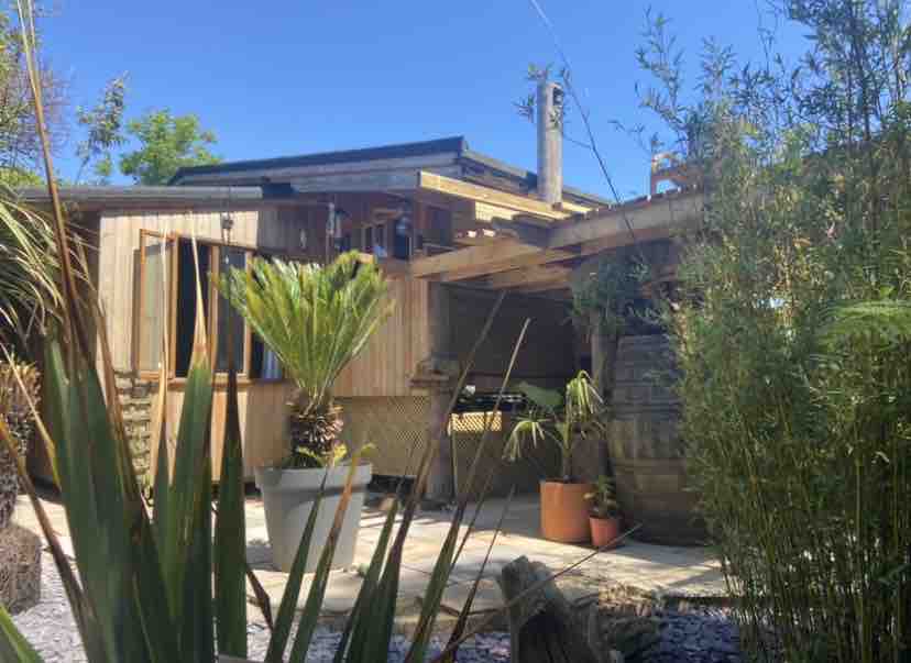 Cabana de luxo super aconchegante com banheira de hidromassagem 'nascentes' situada em um jardim dominado por palmeiras, bambus, samambaias e outras plantações exóticas criando uma sensação de selva. Sendo construído à mão pelo proprietário, este espaço realmente é único. Todos os que visitam comentam que "se sentem como se estivessem no exterior". Uma cozinha linda fica ao lado do salão com 1 de 2 queimadores de lenha. O banheiro tem uma sensação extremamente "sofisticada". O nível inferior revela uma enorme cama artesanal de 4 cartazes.