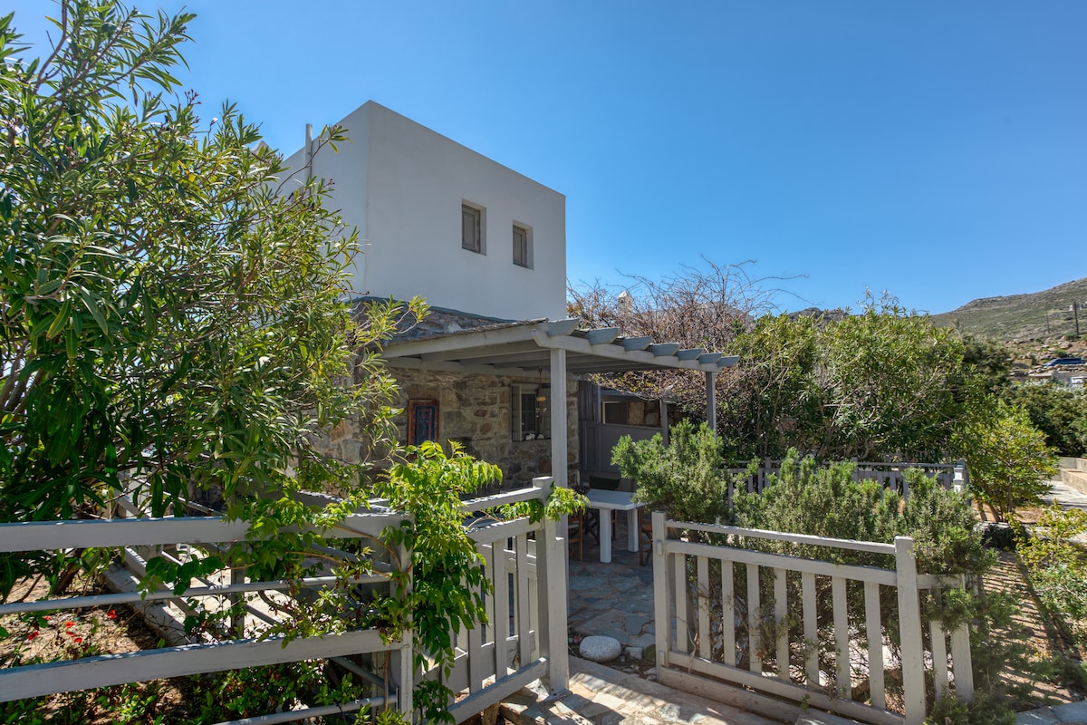 A casa da videira é uma casa tradicional de pedra de 1900 remodelada com estilo e ênfase em suas características fascinantes distintas. Localizada em Kato Chora, sob a área arqueológica do Castelo, a 200 metros da estrada principal (Livadi-Chora) e a 300 metros do mercado da vila. Caminhando pelas vielas de pedra de Kato Chora, destaca-se pela sua vista deslumbrante e pelo pátio com a videira que bloqueia o sol. Relaxe neste espaço calmo e cheio de estilo.