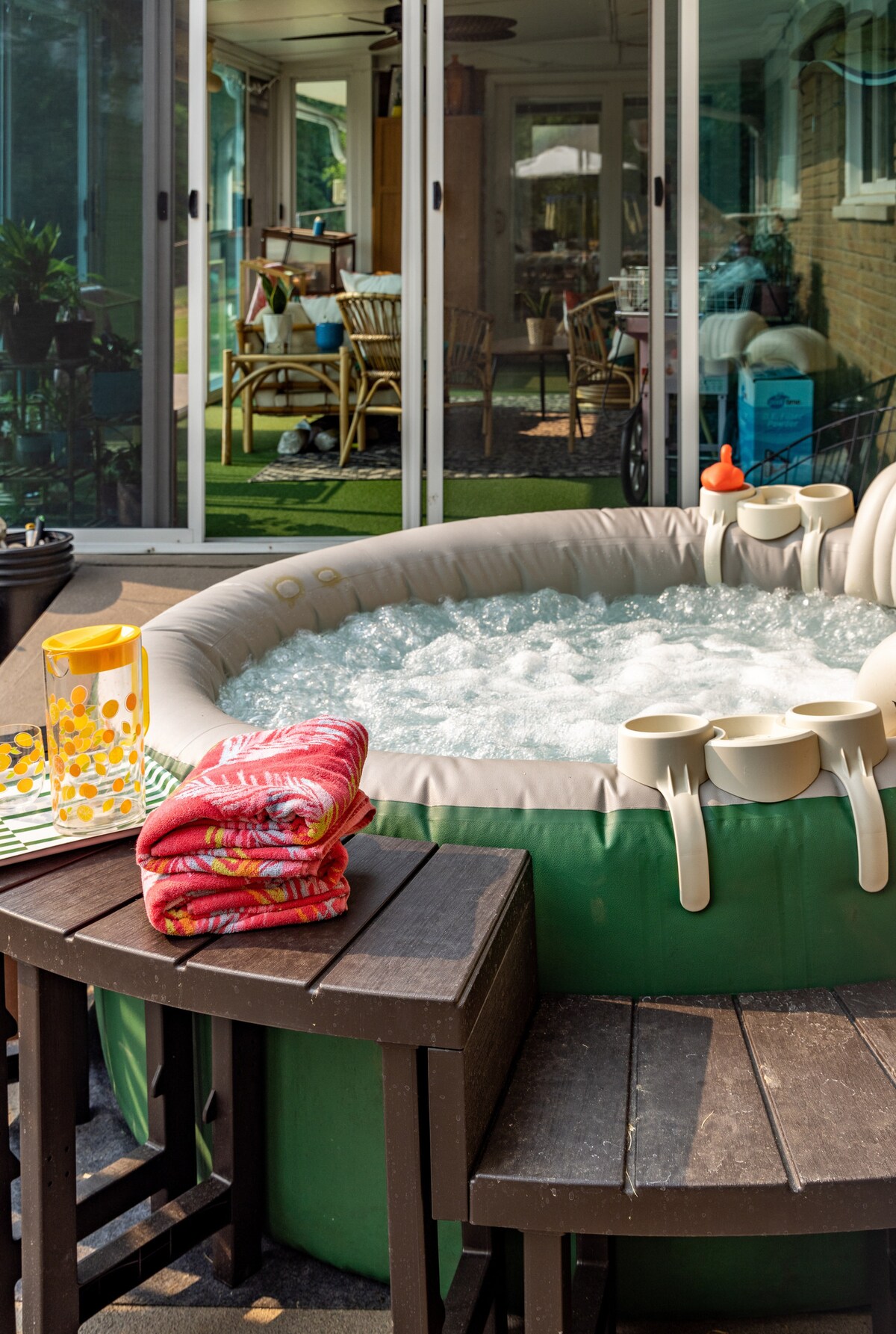 This is an Apartment /Mother in law suite that is connected to my home. You have a separate Front and Back door. One bedroom, Full kitchen, queen bed, and queen sofa bed in the livingroom. Driveway Parking. Backyard and Sun porch are shared spaces that includes a huge in-ground pool, trampoline, beautiful screened in sun porch, outdoor dining, fire pit, hot tub, and the backyard is fully fenced in. The pool is now open! Laundry and Ev Charger can be used for a fee.