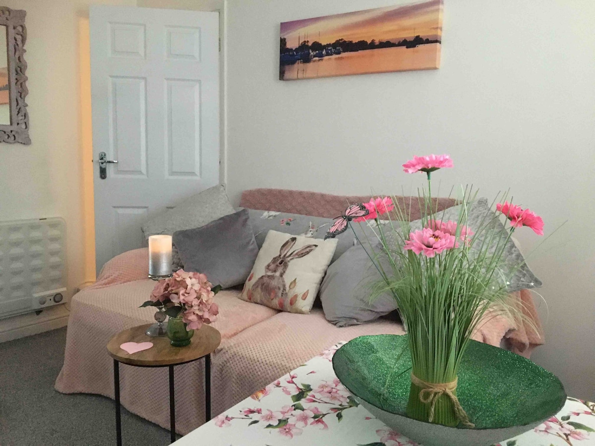 Looking for an escape away from home to the beautiful Suffolk coast? Look no further and welcome to the Forest Flat. A newly built apartment on the ground floor with an amazing cosy feel, with a fully equipped good size kitchen, a bedroom with a comfortable double bed, a full size accessible bathroom, plus a living and dining space with a TV and sofa bed. Treat yourself to a drink and barbecue on the outside roofed terrace on your private drive.