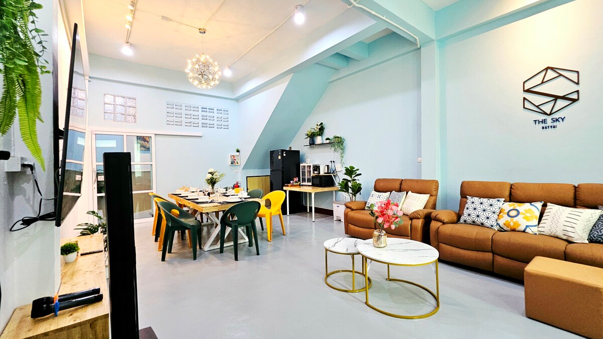 <b><h1> Welcome to The Sky Home Hatyai</b> a cozy blue & gold retreat in downtown surrounded by famous restaurants or drive to Lee Garden & KimYong in 5 min.</h1><h2> Perfect for families friends or travelers group. </h2> <h3>This charming house offer a fully comfotable and stylish retreat while you're in Hatyai city, featuring with <b> Free Wifi Karaoke Netflix and Soccer Table</b> for endless fun.!</h3> We invite you to experience a stay where every moment feels like a cherished memory.