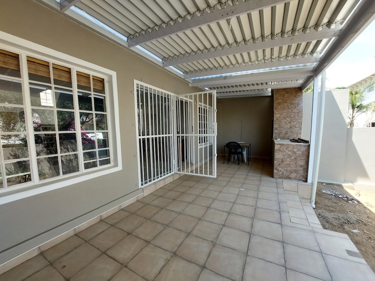 Unwind in this peaceful 2-bedroom apartment nestled in the heart of Eros, Windhoek. Ideal for up to 4 guests. Enjoy a fully equipped kitchen, cozy lounge. Conveniently located near shops, restaurants, and medical facilities, with secure parking, Wi-Fi, and air conditioning included. Experience upscale comfort in this elegant back yard apartment in Windhoek’s prestigious Eros neighborhood. The space features secure parking and close proximity to top restaurants, boutiques, and city center.