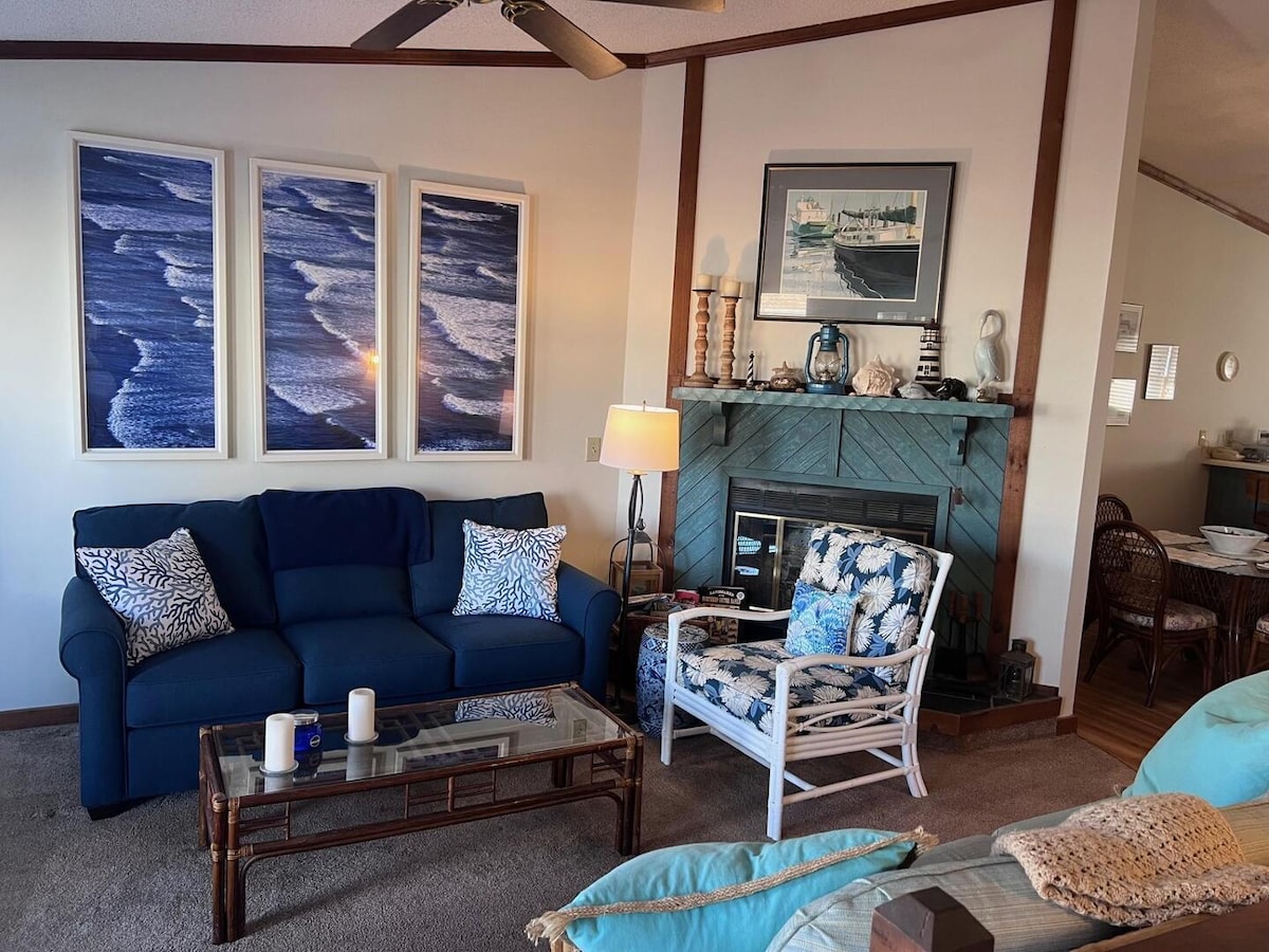 Welcome to "Chez Denise" in beautiful Kitty Hawk, NC, the birthplace of modern aviation. Our family offers a charming 2 bedroom townhouse at "Ocean Winds" set in a residential area. Our decor is a little "touch" of Paris in the spring! 0.4 of a mile from a large beach access. You could walk or park there and use the public bathhouse. Within a half mile area: restaurants, places of worship, a convenience store, post office and our favorite tackle shop! New kitchen appliances! UV Airscrubber!