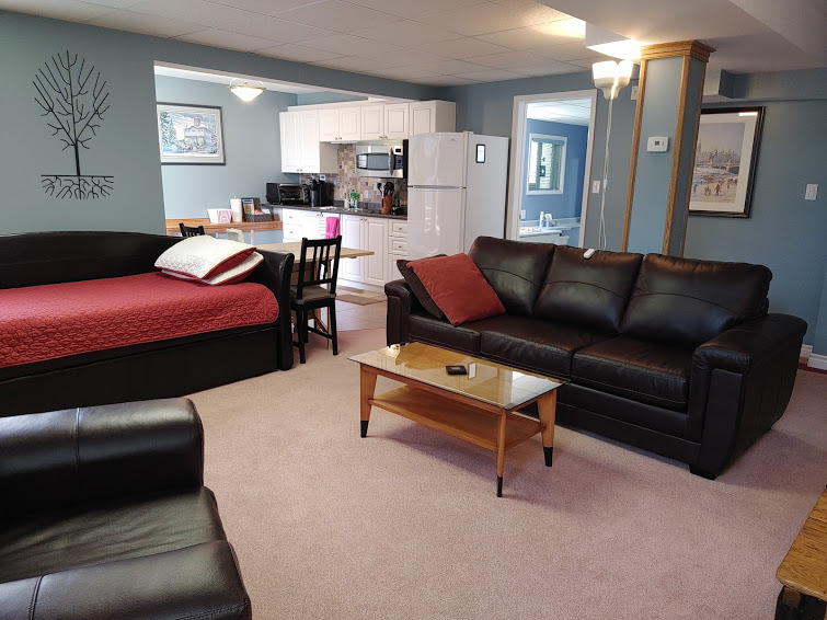 Espaçoso, sem fumo por dentro e por fora, suíte auto-suficiente de 1 quarto com entrada privada, cozinha, ampla área de estar e casa de banho privada. Localizado no extremo oeste de Kingston a 6 minutos da 401 e a 20 minutos do centro. Relaxe na Sala de Estar com lareira a gás ou no confortável assento de amor no quarto grande. Ótimo espaço privado para uma estadia ou uma alternativa de trabalho a partir de casa. Lindo, cercado no quintal, onde pode desfrutar do ar livre. Internet de alta velocidade e muitas estações de TV.