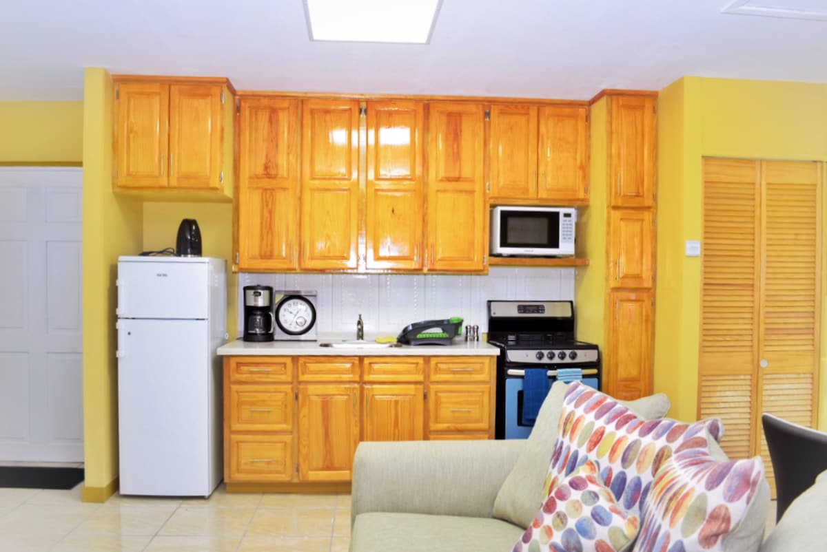 Este belo apartamento estúdio está localizado no centro de Kingstown, no terceiro andar de um edifício comercial. É decorado com bom gosto e confortável, com todas as comodidades modernas, como: máquina de lavar, secadora, micro-ondas, cafeteira, kitchenette totalmente equipada e torradeira . Está localizado dentro do distrito comercial central e, portanto, a uma curta distância a pé de lojas locais e pontos de venda de alimentos.