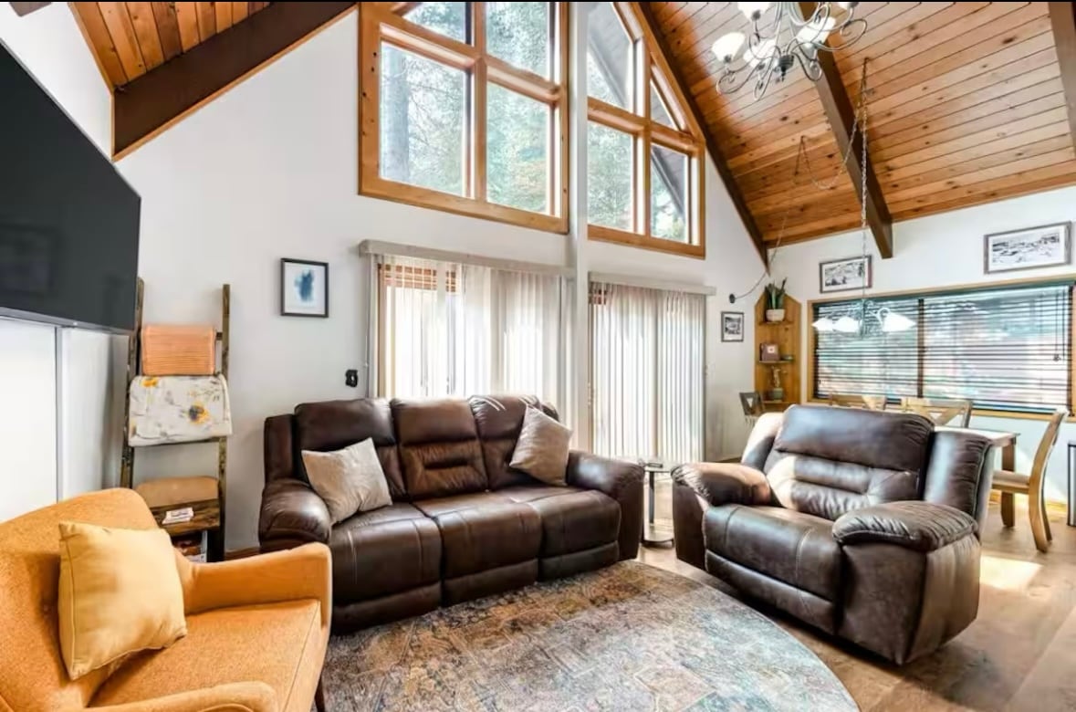 The Chickaree Mountain Retreat is our lovingly cared for 1965 A-frame with the classic architecture we know and love. The A-frame features two upstairs bedrooms, a darling kitchen, and a comfortable living room warmed by an inviting gas fireplace. Make lasting memories during any season with your family or friends. With the Serene Lakes and Royal Gorge trails only a few blocks away and five ski resorts within short driving distance, the CMR sets you up for an adventurous Sierra getaway!