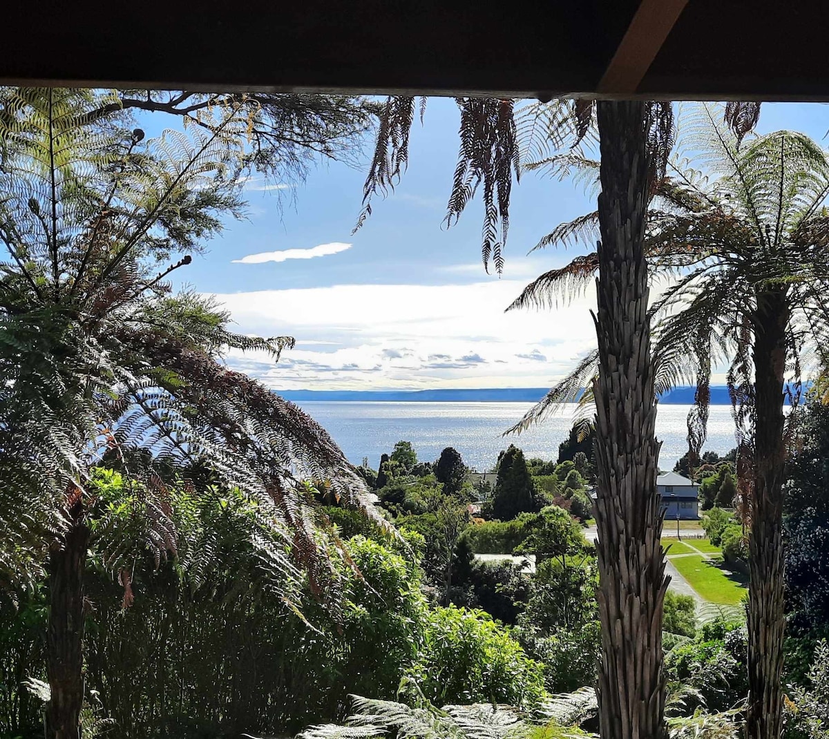 Lindo apartamento de dois quartos. Design luxuoso baseado em conceitos de casa solar passiva, superisolado com vidros triplos, ventilação de recuperação de calor, painéis solares fotovoltaicos impressionantes e pisos de concreto polido. Cozinha completa. Este é o lugar perfeito para descansar e relaxar! Caminhada fácil de 15 minutos até o lago Taupo ou cinco minutos a pé até o Jardim Botânico. Logo na esquina das piscinas termais de Taupo DeBretts. A aventura está à sua porta com o lago e rios, montanhas e maravilhas termais!