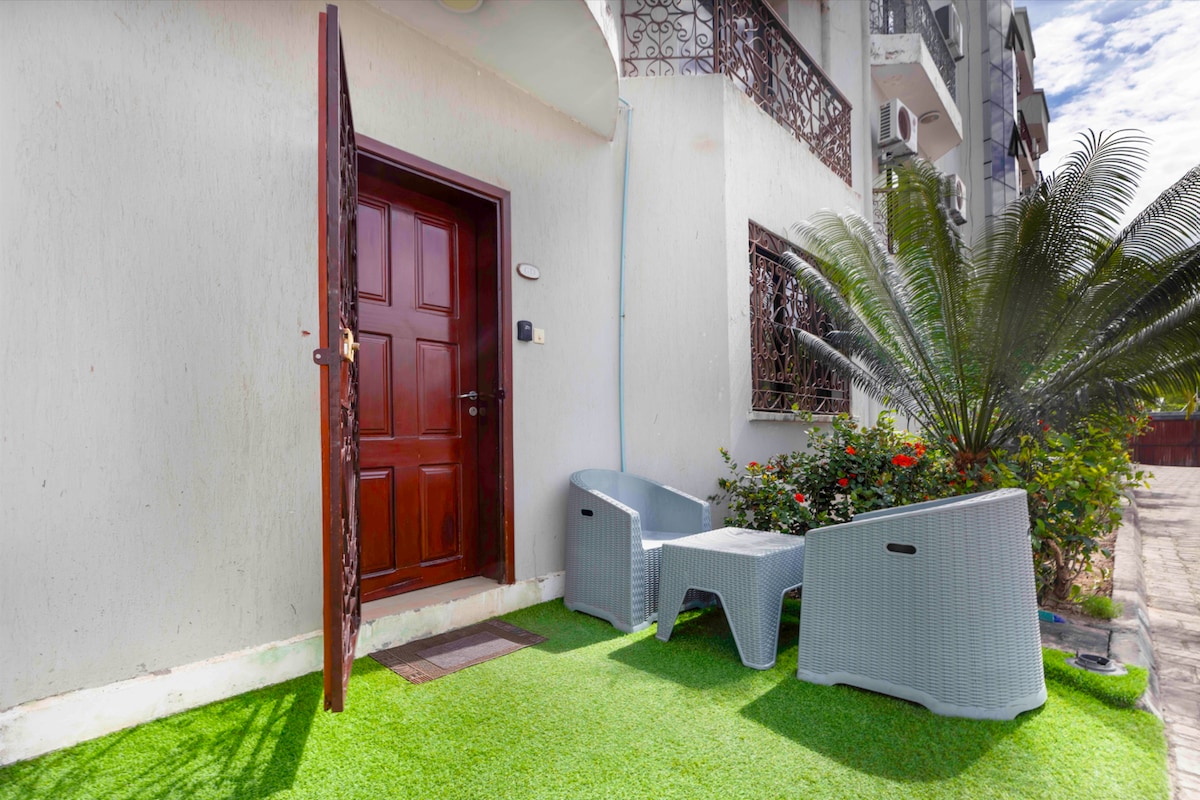 Welcome to one bedroom apartment with big space for your comfort,relaxation suitable for couples gatesway,working staff,travellers,diplomats,students,expatriates A full equiped kitchen,a living room,a modern bathroom,cozy beddings,coffee station,laundry area, The view of the garden with an outdoor sitting area makes the home more alive Its located in the prime area where you will have access to restaurants,coffee shops,nightlife,beachresorts,