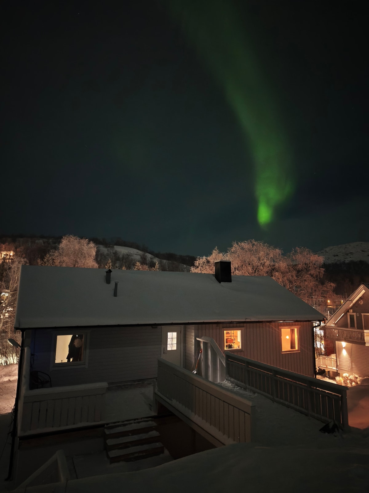 Apartamento para arrendar, 2 quartos, varanda, a maioria das comodidades e perto da cidade, de mercearias, do hotel de neve e de atividades ao ar livre. Estacionamento gratuito. Paragem de autocarro do outro lado da estrada, quer queira ir para a cidade ou para o aeroporto. Muitas vezes, pode ver a aurora boreal a partir da varanda. Espero que aproveite a sua estadia. Informe-me caso tenha alguma dúvida. O check-in e o check-out podem ser flexíveis. O quarto 2 tem uma cama de 120 cm, pelo que o apartamento é mais adequado para 3 adultos ou 2 adultos e 2 crianças. Também podemos providenciar 1 cama/colchão extra.😊Bem-vindo(a)😊
