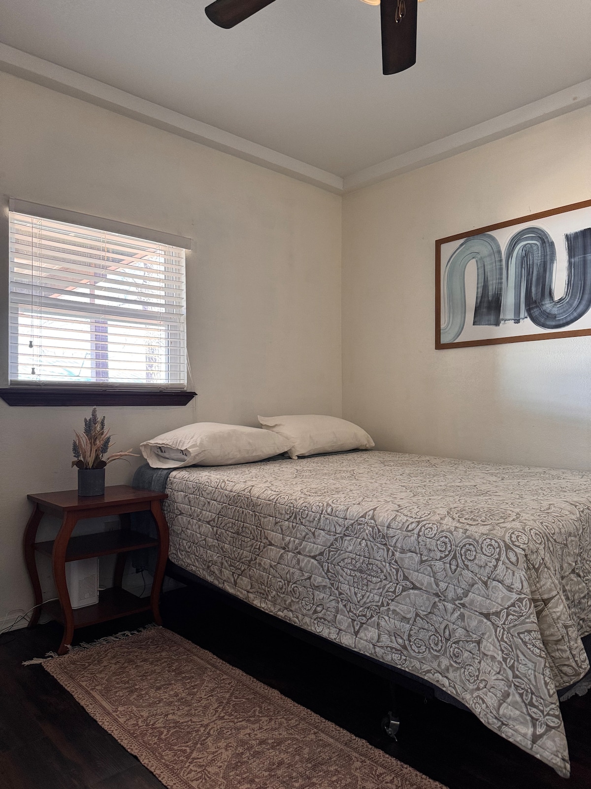 Relaxe com toda a família nesta acomodação tranquila. Do cercado no quintal ao parque do outro lado da rua para sua família aproveitar. Na cozinha, você encontrará cafeteira e utensílios básicos de cozinha. (Fogão, geladeira e micro-ondas, panelas e frigideiras, utensílios de cozinha, louça) A sala de estar tem alguns sofás e uma TV de 55 polegadas e relaxar para a noite! Um quarto tem uma cama tamanho queen e o segundo quarto tem um beliche (twin over full). O banheiro tem uma grande banheira com chuveiro!
