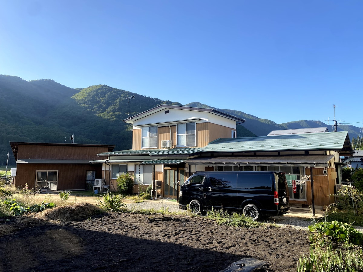 Pode relaxar e desfrutar da bela vista da casa de hóspedes "Yunkaku", que está rodeada pela natureza na mais bela aldeia do Japão. Para aqueles que ficam, churrascos e panelas são populares no terraço ao redor da lareira. Também pode ficar com o cão, por isso muitas pessoas gostam de explorar a floresta enquanto se curam naturalmente. Há um templo com cavalos nas proximidades e, se o momento for bom, também pode ver como os cavalos estão a exercitar-se. Por favor, diga-me se quer ver o templo e as instalações de equitação. Não existe uma banheira e apenas um chuveiro, mas existem muitas comodidades de águas termais nas proximidades. Por favor, use isto se quiser mergulhar em água quente lentamente. A instalação de Onsen "Star and Green Romantic House" fica a 10 minutos de carro 20 minutos de carro até às instalações de águas termais "Papuka Land" A instalação de Onsen "Ogawa-no-Yu" fica a 10 minutos de carro Passeios turísticos, acampamentos de música, acampamentos desportivos, treino corporativo, treino em grupo para Nagano ou Hakuba Village