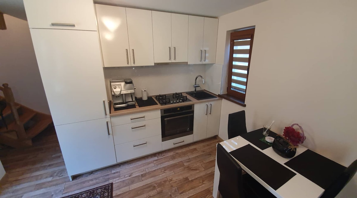 Casa privada com dois quartos. Possível alugar para 3 pessoas. Estacionamento privado, incluindo. A 50 metros dos apartamentos é basquetebol + mini campos de futebol. Chegará ao mar após os 7-8 minutos de caminhada. Até ao centro da cidade pode usar o autocarro número # 4 ou pelo carro pode alcançá-lo em 10 minutos - cerca de 7 km. Pequeno supermercado a 500 metros dos apartamentos, um maior em torno de 3 km.