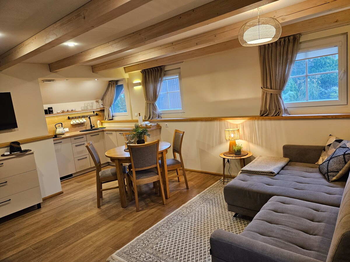 1.5 bedroom two level chalet ‘Gile’ is a newly restored ethnographic ranch located in Zemaitijos national park near the lake Plateliai, surrounded by the forest. You will enjoy private garden, hot tub in the terrace and amazing forest view. You will find many cool chill areas, jacuzzi-hot tubs, Horse riding centre, outdoor fire place etc. 200m away there is famous Paplateles tracking trail, 300m away there is bicycle track which can take you around the lake and much more.