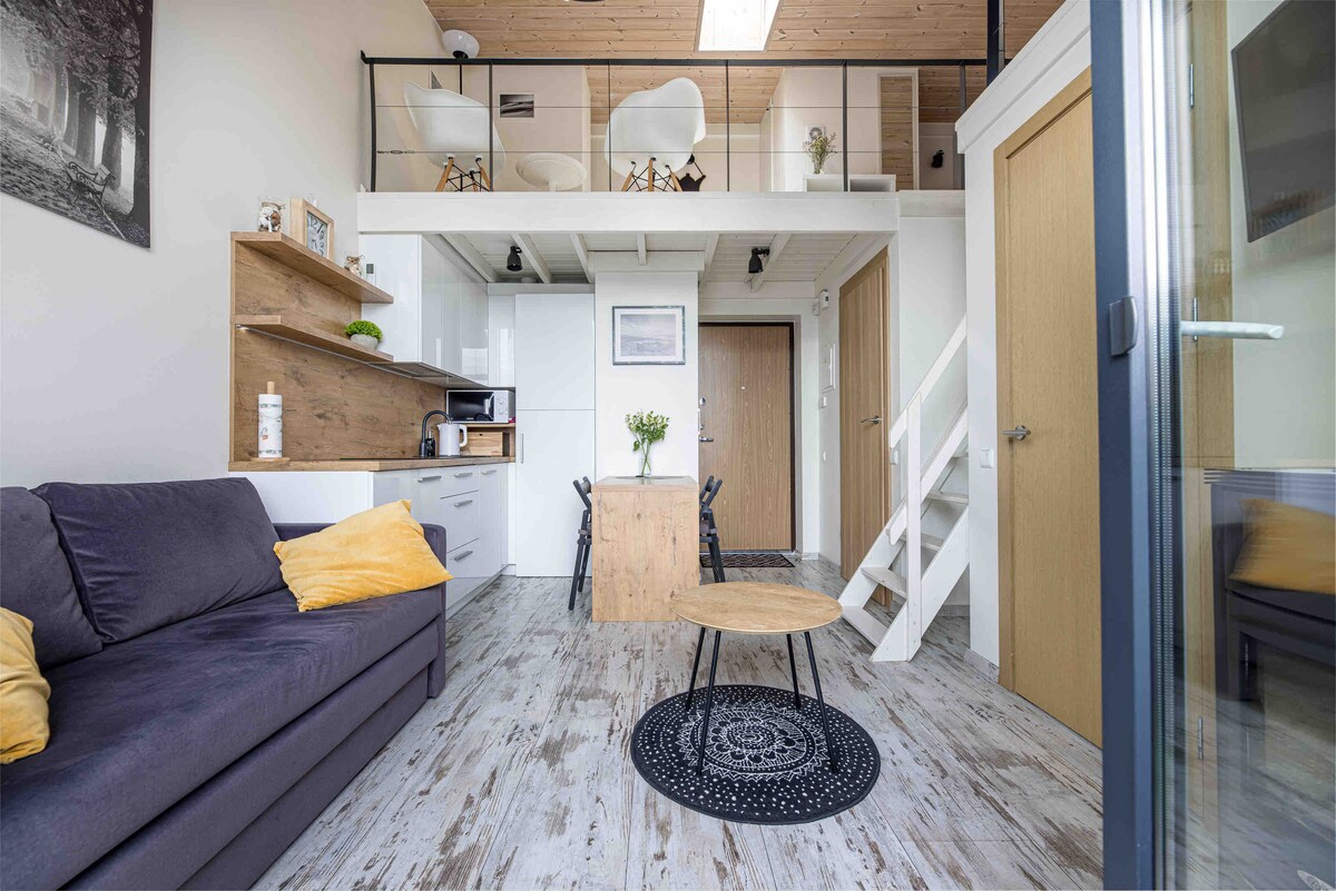 O Old Town Loft é adequado para até 4 hóspedes. Instalações do apartamento: quarto (acessado por escada): cama de casal confortável, toda a roupa de cama (lençóis, travesseiros, cobertores), banheiro: chuveiro, vaso sanitário, produtos de higiene pessoal, toalhas, secador, cozinha totalmente equipada com utensílios de cozinha e utensílios de cozinha, fogão de indução, pratos, panelas, geladeira, chá e café, água potável. Há sofá-cama com parte de dormir para duas pessoas na sala de estar. Guarda-roupa com cabides. Recuperador. Wi-fi rápido. Televisão inteligente.