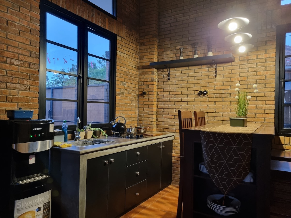 Uma casa localizada no coração de Lumajang, com um pátio espaçoso, um mini jardim e uma garagem. Esta casa confortável está equipada com acesso Wi-Fi gratuito, ar condicionado e um aquecedor de água. Tem três quartos, cada um equipado com ar condicionado e um climatizador. Tem duas casas de banho. Possui um lounge com assentos em pufe, uma sala de estar familiar com uma televisão inteligente para karaoke e uma área de relaxamento no último piso. Há um quintal para ar fresco e secar roupa. Está totalmente equipado com utensílios de cozinha.