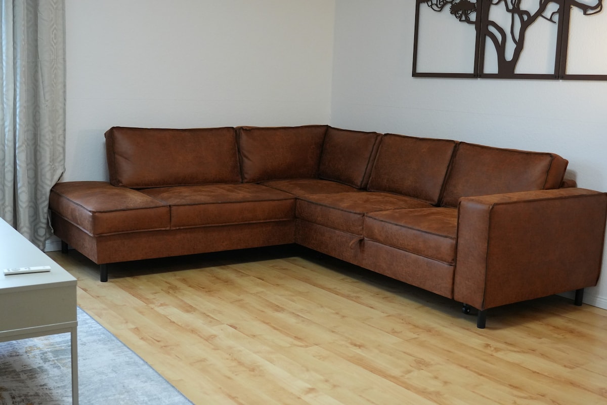 Von dieser zentral und ruhig gelegenen Unterkunft in der Schlosspark-Residenz aus seid ihr in Nullkommanichts an allen wichtigen Orten. Die Wohnung erstreckt sich über 3 Ebenen und ist hochwertig und behaglich eingerichtet. Im separaten Schlafzimmer befindet sich ein Doppelbett, auf den Ebenen 2 und 3 jeweils ein Schlafsofa. Schnelles WLAN und ein 55-Zoll-SmartTV sind vorhanden. Die offene Küche ist mit Induktionsherd, Backofen, Kühlschrank, Geschirrspüler und Mikrowelle ausgestattet.