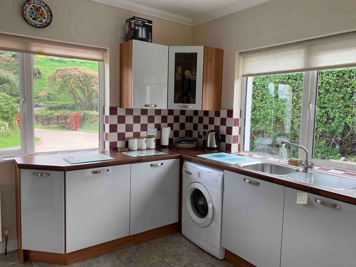 Dou-lhe as boas-vindas ao nosso paraíso na Wild Atlantic Way! Acorde com as deslumbrantes vistas panorâmicas sobre a aldeia de Glencolmcille, Glen Head e o Oceano Atlântico que são simplesmente inesquecíveis. A aldeia de Glencolmcille fica a apenas dez minutos a pé e tem uma loja com bombas de combustível, dois pubs, um que serve comida caseira adorável, um café, correios e restaurante. Perto da praia de Glencolmcille e da aldeia folclórica. As falésias de Slieve League e a praia de Silver Strand ficam a 15 minutos de carro. Temos um carregador de veículos elétricos.
