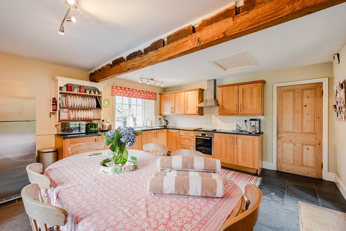 Spacious detached private house, 3,000 sq ft/ 275 sq m. Own drive. 3 acres of grounds. Log burner (fuel provided) Front, back and garden doors; Entrance hall, sweeping staircase, beautiful sitting room, library stuffed with books, 3 large bedrooms (Vispring beds) plus 3 fab bathrooms with baths & separate showers - plus a single bed downstairs. Warm kitchen, utility room & larder. Antique furniture, lovely curtains. Perfect for families, couples, groups. Walking galore! 3 Pubs in the village.