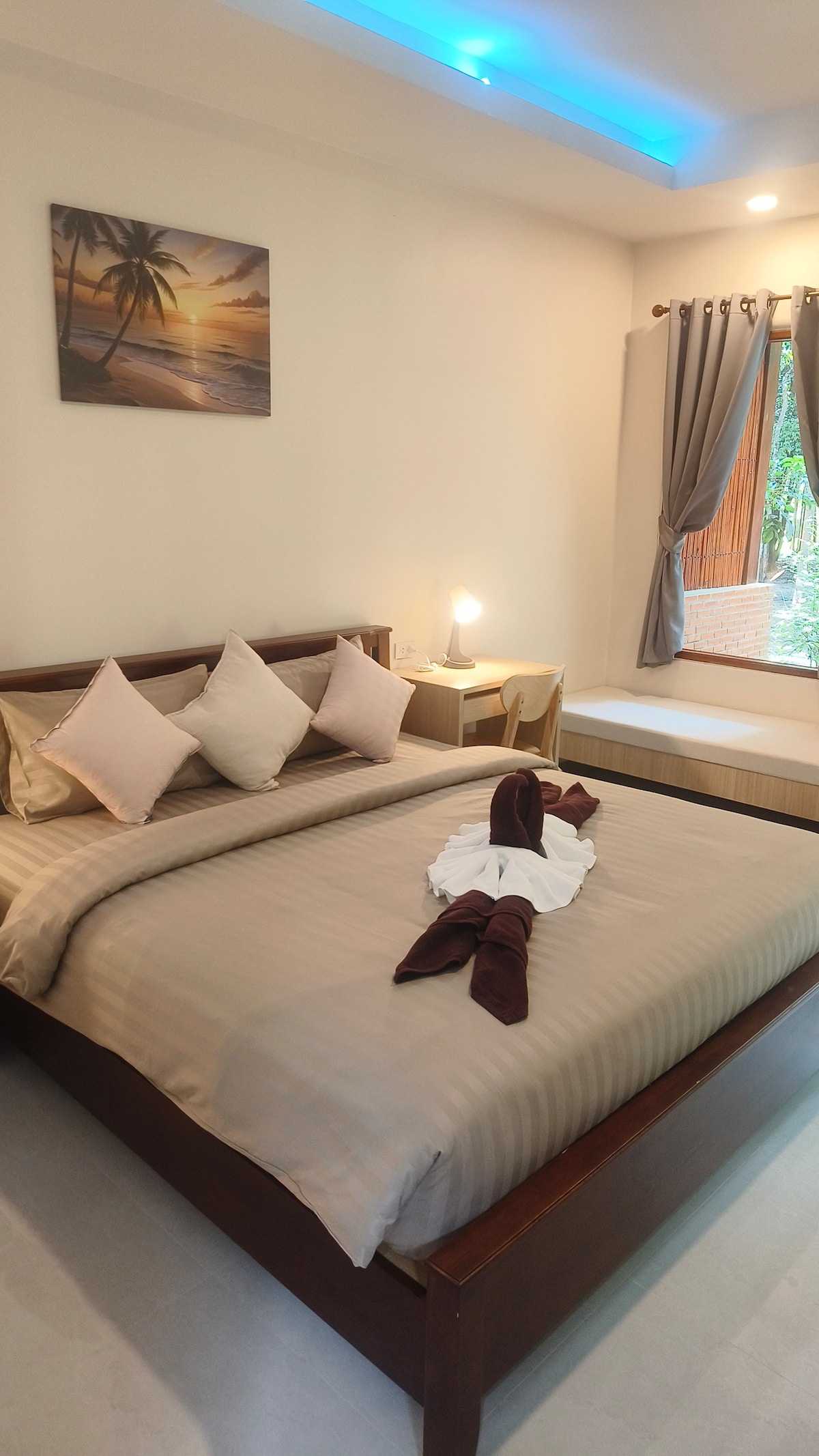 Bem-vindo ao Tree in the Sea Resort em Koh Lanta – um retiro de palmeiras tranquilo e paradisíaco diretamente à beira-mar. Desfrute das marés, do nascer do sol e relaxe na natureza serena. A praia convida você a passear e explorar – na maré baixa, você pode descobrir rochas, pequenos animais marinhos e formações naturais. O jardim de palmeiras é amorosamente iluminado à noite, criando uma atmosfera aconchegante, perfeita para relaxar. Cada um dos meus bangalôs vem com um banheiro privativo com chuveiro e ar condicionado.