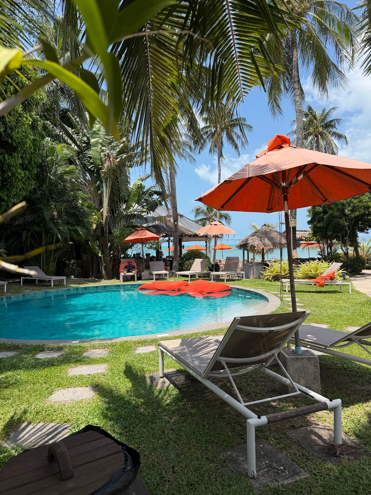 Bangalô reformado em junho de 2024 em um resort de 16 bangalôs e 3 casinhas com um restaurante/bar aconchegante. Situado no coração de um magnífico jardim arborizado com uma piscina central A apenas 100 metros da esplêndida praia de Maenam, nosso hotel é ideal para uma estadia relaxante sem crianças Desfrute de um ambiente sereno onde você pode relaxar e ler à beira da piscina. Estamos à sua disposição para atender a todas as suas necessidades e tornar a sua estadia o mais agradável possível.