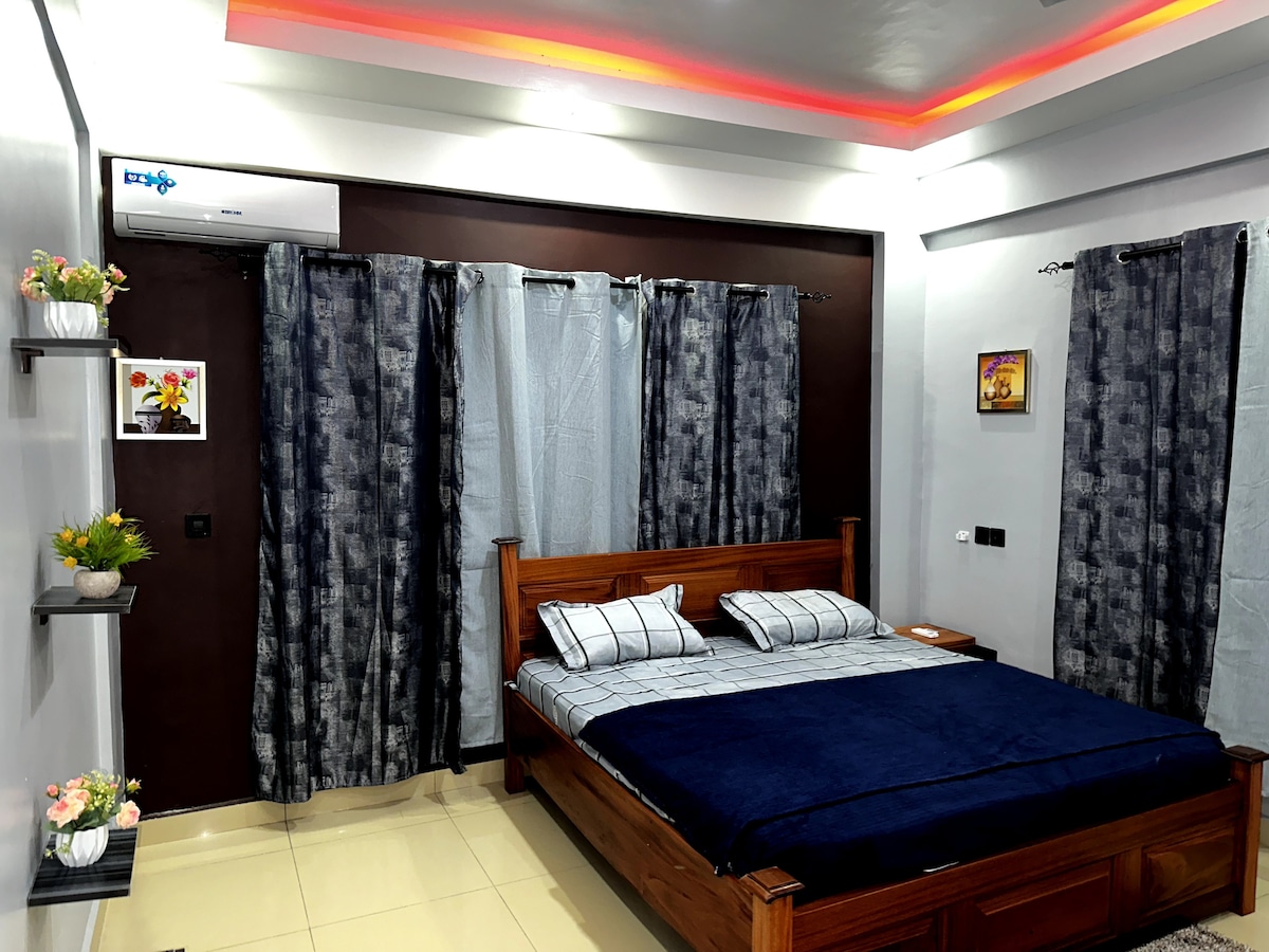 Apartamento privado de um quarto em Daban/Anyinam, perto de Santasi e Atasemanso, Kumasi. Localizada num bairro tranquilo, decente e silencioso Perto do centro comercial Kumasi City Mall, de um mercado local e de um hospital, a 20 minutos do aeroporto. Limpeza gratuita, Internet Wi-Fi STARLINK ilimitada de alta velocidade, Smart TV, Netflix grátis, filmes e desporto Boa segurança com cerca elétrica, cobertura de CCTV 24 horas por dia Dois cães de guarda/segurança da raça pastor alemão. Soltos APENAS à noite. Temos geradores de reserva para cortes de energia.
