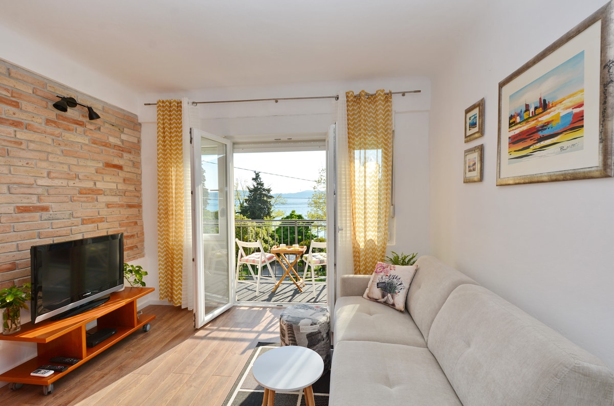 Acesso directo à praia. Apartamento T2 com vista para o mar, sem trânsito, ruído ou poluição. A praia de areia ''Kolovare'' fica a 2 minutos do apartamento. Fácil caminhada pelo mar até o centro da cidade apenas por 15 minutos.. Loja, banco, restaurante, pizzaria, café, mercado, principal estação rodoviária, hospital e outros lugares que você precisa estão a 5-10 minutos (a pé). Os hóspedes podem entrar em contacto connosco a qualquer momento e pedir qualquer informação.