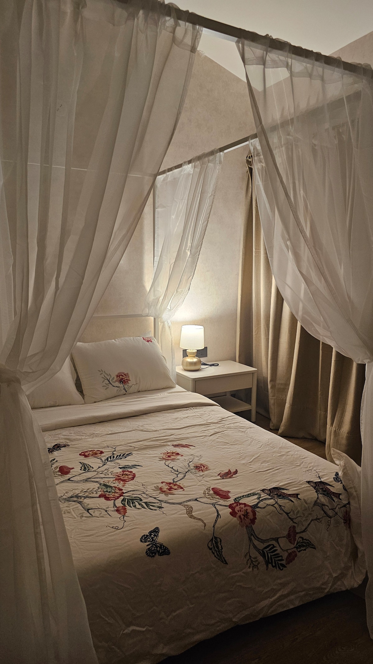 Acorde com o canto dos pássaros, a brisa suave do mar e o magnífico nascer do sol, cercado por vegetação exuberante. A 5 minutos a pé da PRAIA. Smart TV, ar condicionado, Wi-Fi, banheira. Passe tardes aconchegantes na varanda com um livro e uma chávena de café, no meio de vegetação exuberante. Passeie pela praia, explore os belos jardins paisagísticos, a piscina e o restaurante à beira da piscina do complexo de apartamentos de luxo, situado no bairro tranquilo e tropical da Ilha Madh Zomato Swiggy e Blinkit fazem entregas.