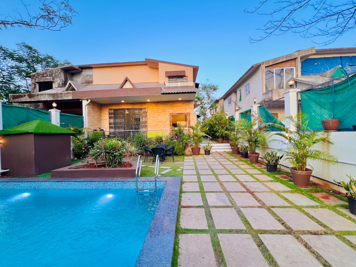 Férias sem sair de casa que aceitam animais de estimação, experiências gastronômicas exclusivas e bem-estar inigualável esperam por você Relaxe neste espaço calmo e cheio de estilo. Quartos grandes de estilo casa de campo em uma plantação de coco estabelecida em Alibaug, o que torna um cenário idílico para umas férias felizes. Esta propriedade privada tem OITO QUARTOS GRANDES separados em estilo chalé com uma sala de estar à beira da piscina e um espaço de sala de estar separado para refeições. Cada quarto é exclusivo para os hóspedes, apenas a PIS e a sala de estar são compartilhadas.