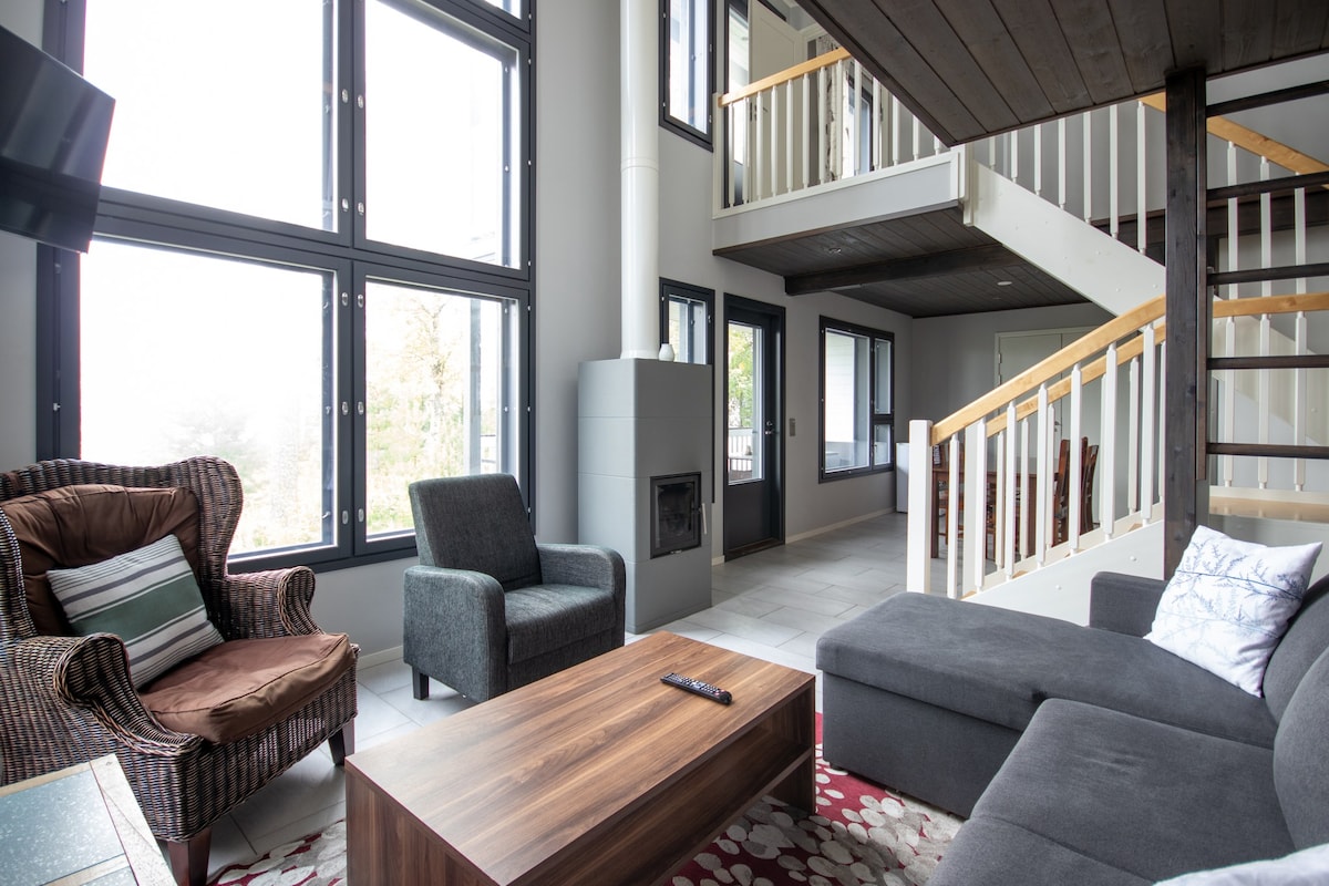 A atmosfera nesta cabana de 35 m² faz com que se sinta imerso na natureza, mas totalmente protegido. Desfrute da paisagem sazonal ao brilho da lareira, relaxe na sauna e dê um mergulho no lago (com um buraco aberto no gelo durante o inverno). Observe cisnes e aves aquáticas de perto e mergulhe nos sons da natureza, sem ser perturbado pelo ruído. A cabana oferece verdadeiro luxo na tranquilidade da natureza, mas a uma curta distância do centro da cidade.