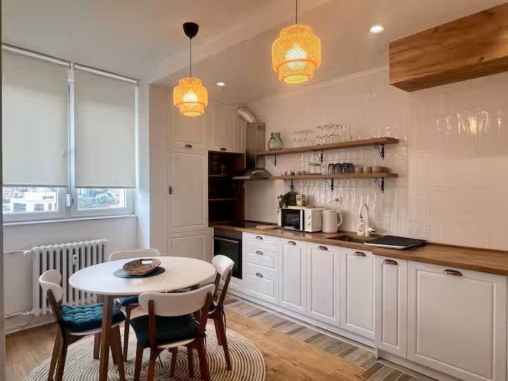 Luxurious, newly renovated Airbnb apartment in central Prishtina on the vibrant 5th floor of a Gated Apartment Complex. Features two cozy bedrooms, a stylish living room, fully equipped kitchen with high end appliances and pristine bathroom. Ideal for business or leisure, offering comfort, convenience, and prime location for exploring Prishtina. Your home away from home awaits!