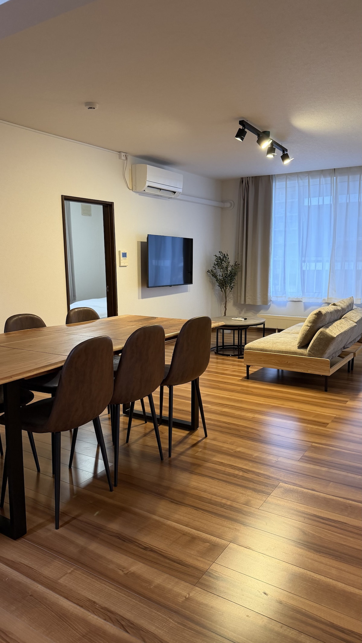 Completamente independente numa casa de 2 famílias. Todo o 2LDK independente no piso térreo é uma casa inteira.2 quartos.Pode alojar até 4 hóspedes.Há estacionamento gratuito para dois carros e o jardim é para uso exclusivo dos hóspedes.No inverno, também pode desfrutar de brincadeiras na neve. O bairro é um bairro residencial tranquilo. A 5 minutos a pé da fonte termal natural e da piscina aquecida.Há também estradas arborizadas ao longo do rio e passeios rodeados de árvores. Todos os quartos têm piso radiante, para que possa manter-se aquecido(a) 24 horas por dia. Além disso, todos os quartos são totalmente climatizados, para que possa desfrutar de uma estadia fresca e confortável no verão. Há estacionamento disponível ao lado do edifício e em frente à entrada.