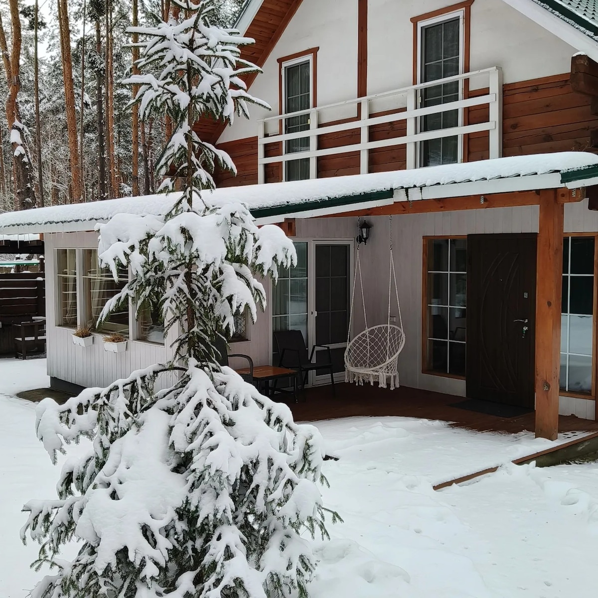 Uma casa de madeira aconchegante e quente está localizada em uma floresta de pinheiros no território da cidade. Você pode passar um fim de semana, um feriado ou simplesmente viver longe da cidade no meio de uma floresta de pinheiros. A casa tem uma cozinha equipada, eletrodomésticos e uma lareira. A casa é cercada por pinheiros e o rio fica a apenas 10 minutos a pé. A distância até Kiev é de 40 minutos de carro.
