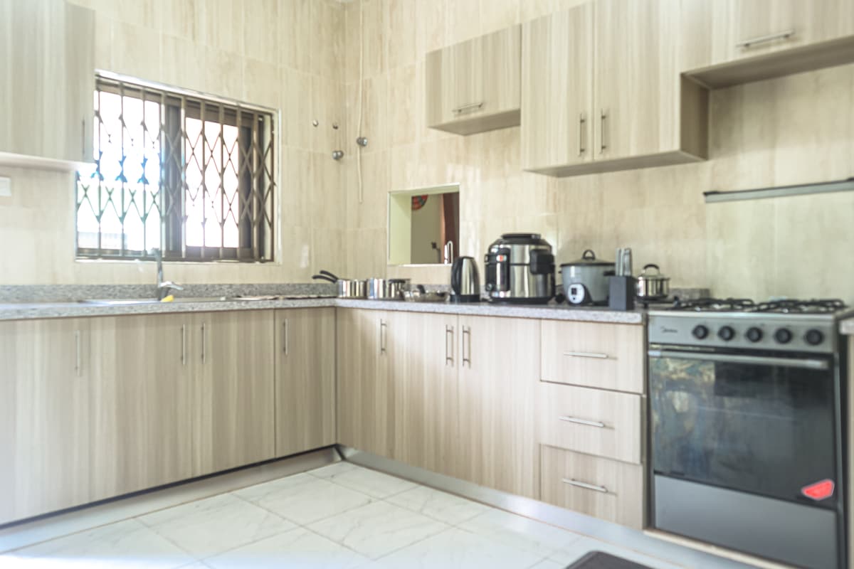 1. A segurança é um fator importante na sua escolha de acomodação? 2. Você está procurando uma acomodação elegante com comodidades incríveis e toques atenciosos? 3. Deseja experimentar uma hospitalidade excepcional durante a sua estadia? Então o Serene Haven é a escolha perfeita para você. Esta bela casa de dois quartos está localizada dentro do ambiente sereno de Devtraco Courts (uma propriedade fechada bem planejada e gerenciada) na Comunidade 25, Tema, que abriga muitos profissionais e se orgulha de segurança 24 horas por dia, 7 dias por semana.