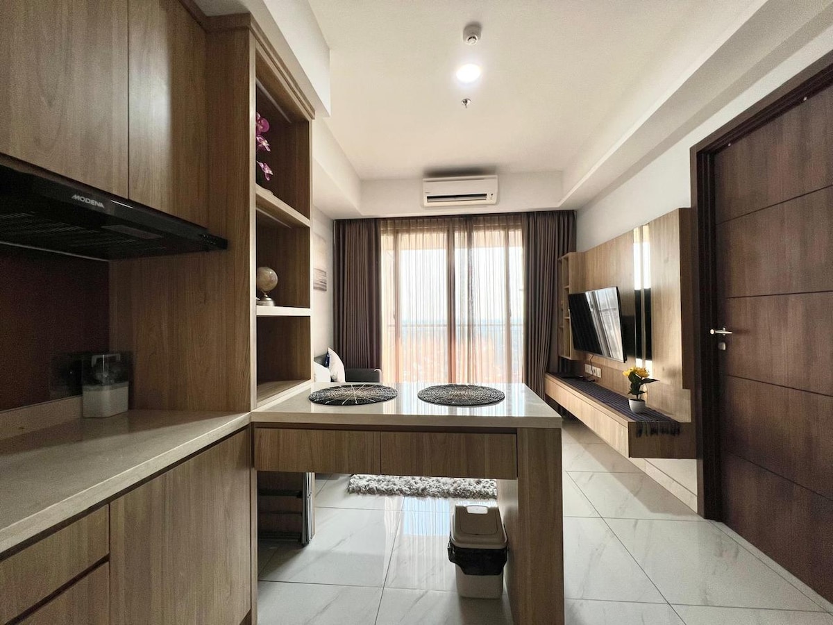 Dou-lhe as boas-vindas ao seu santuário urbano! Este estúdio chique está perfeitamente localizado em Pethe, o coração vibrante do sul de Jacarta, ideal para jovens viajantes que procuram uma experiência dinâmica na cidade. Entre e descubra um layout moderno e em plano aberto projetado com estilo e conforto em mente. Com mobiliário moderno num ambiente acolhedor, perfeito para relaxar após um dia de exploração da cidade. A kitchenette bem equipada permite uma fácil preparação de refeições, enquanto a elegante casa de banho oferece um refúgio refrescante