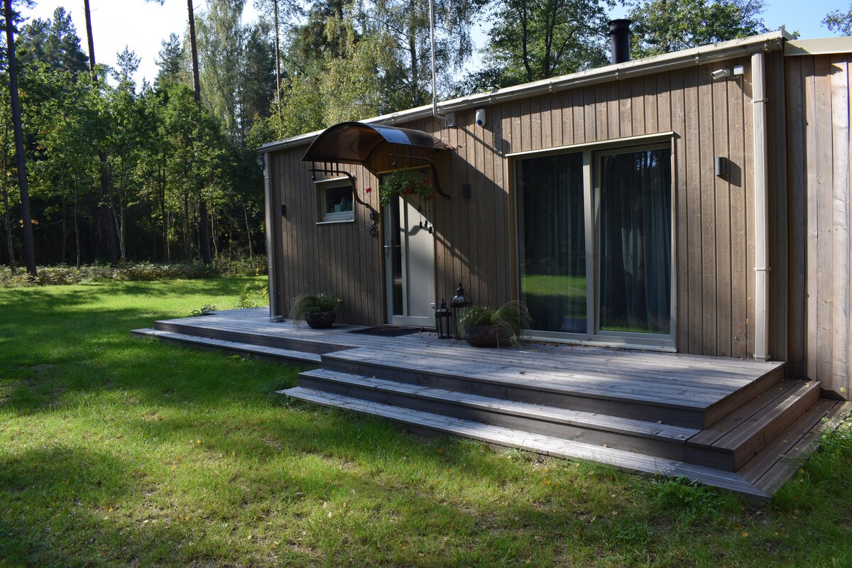 Uma pequena cabana contemporânea projetada para 3 pessoas. A casa tem tudo o que precisa para viver confortavelmente nas estações frias, pois a cabana está equipada com pisos quentes e pode arrefecer durante a temporada quente de verão, pois há ar condicionado. Há um parque infantil, jogos, área de configuração com coelhos, barcos disponíveis, sala de lareira, sauna e lareira no verão, os hóspedes têm acesso à sua própria horta.