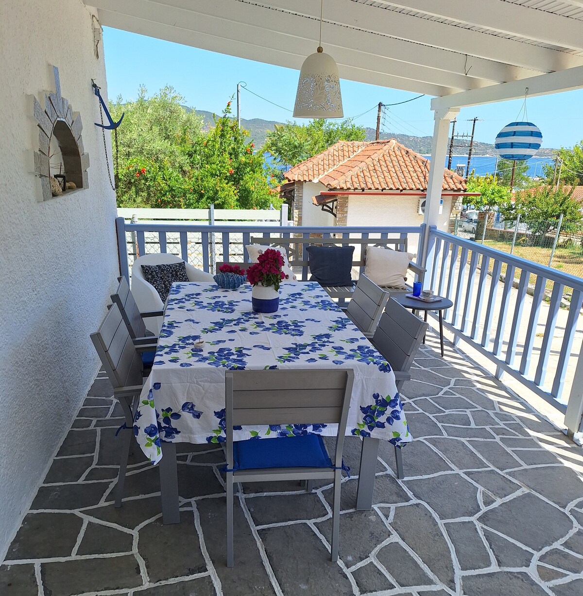 Casa de verão a apenas 20 passos da orla marítima. Está localizada em uma área tranquila perto da vila de Agios Nikolaos em Halkidiki, ideal para descansar, relaxar, nadar e férias despreocupadas. Para nossa família, é nossa ermida.