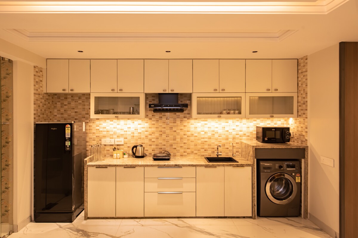 Ebb É um espaço arejado deliciosamente luminoso com uma vibração descontraída, é um apartamento de dois quartos com serviço e uma área de terraço Localizado centralmente e com fácil acesso a todos os restaurantes, shoppings, hospitais e pontos turísticos da cidade Você pode escolher esta estadia se você estiver na cidade para uma viagem a trabalho, uma viagem em família, uma estadia de férias, estadia médica, etc. Está localizado no primeiro andar com elevador e segurança 24 horas e um estacionamento Os interiores zen e minimalistas proporcionam uma sensação de felicidade :)
