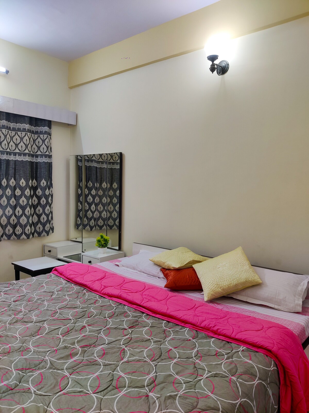 ● Government Certified 1Bhk Flat ( Legally licensed ) ●Enjoy your stay in a cozy, polished , and Sen-Sational abode . ● Come explore our aesthetically pleasing Garden and Terrace area 😀. ● Note - 3rd floor-No lift ( but easy and comfortable stairs , I promise 😉 ) ●No Parking 🤗 ● Provided Ammenities : Ac Geyser Fridge Personal Care ( Toothbrush , Toothpaste , Shampoo, Body Soap ) Iron Kitchen&Utensils Dining Space Hi Speed WiFi Dedicated Work Space Wardrobe Water
