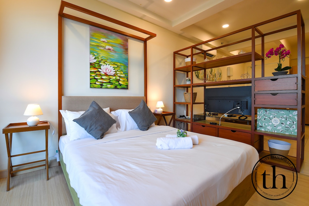 Este apartamento estúdio hyggelig apresenta uma área de estar e de dormir em plano aberto com uma cama queen, portas deslizantes para uma varanda com vistas deslumbrantes para o Mar da China Meridional e um pequeno quarto individual separado. Uma kitchenette bem equipada (não é permitido cozinhar) e uma casa de banho moderna proporcionam conforto diário. Os detalhes atenciosos incluem um cesto de piquenique para passeios na praia e um tapete de ioga para um alongamento tranquilo. Ideal para casais ou famílias pequenas que procuram uma escapadela à beira-mar acolhedora e relaxante com um charme único 🐚🌊🌴