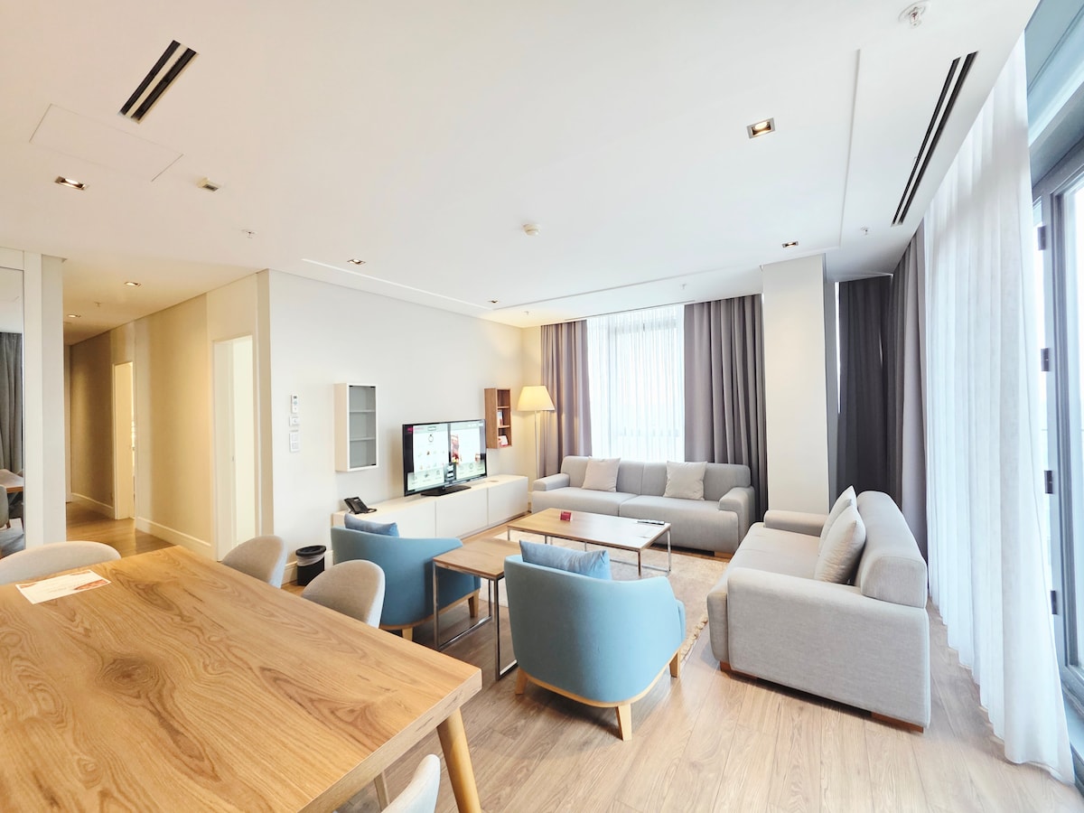 This luxury residence is located in Basın Ekpres. The unit is inside of a 5 star hotel with all the amenities available to our guests. This 1 bedroom unit provide housekeeping, a fully equipped kitchen, and access to a fitness and wellness center with a gym, spa, and swimming pools.There is a Starbucks, a Migros grocery store, high quality restaurants, a hairdresser, a pharmacy and much more at the premises.