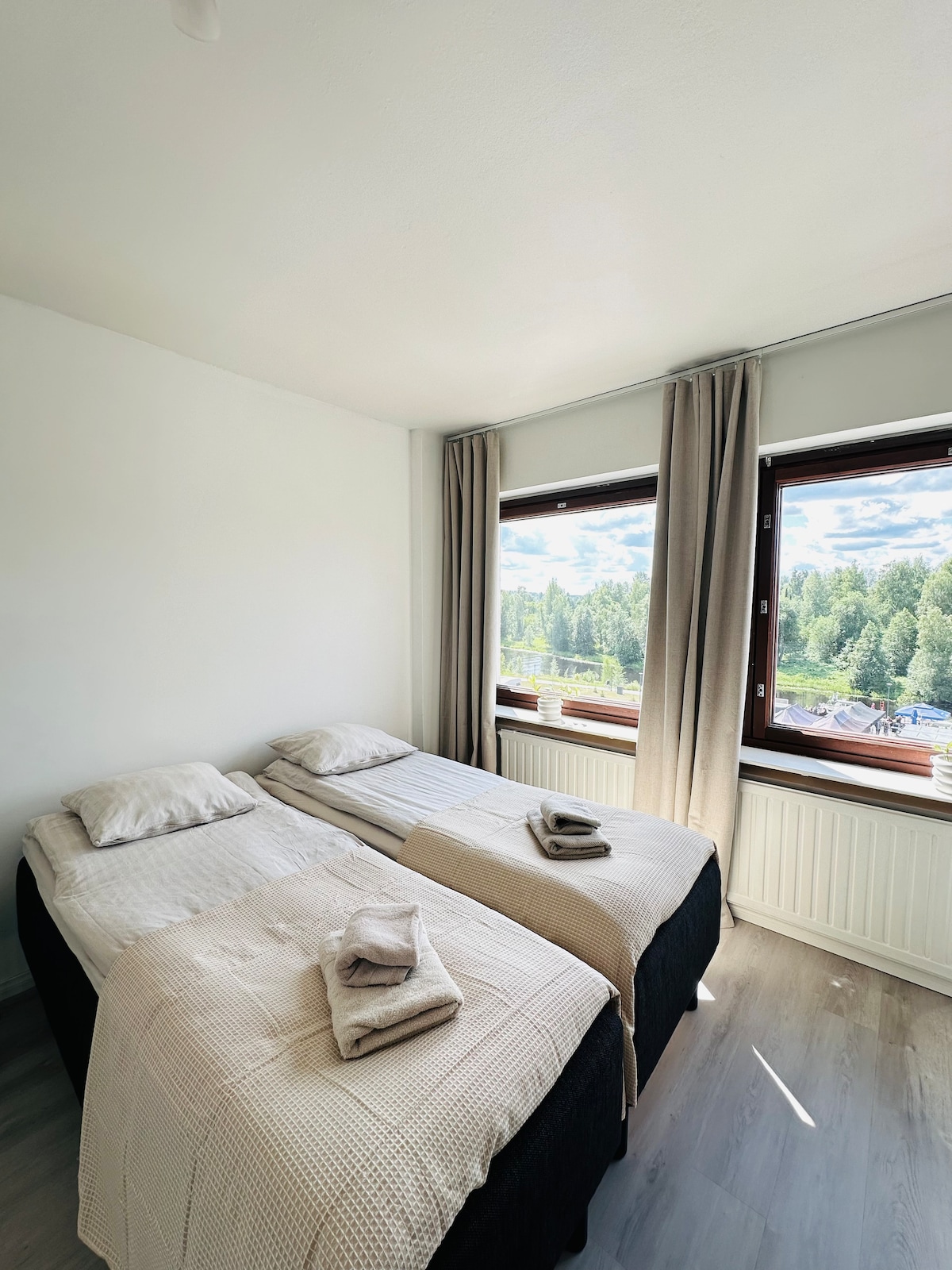Bem-vindo para desfrutar de uma vista deslumbrante e paz no meio da floresta, na margem de um belo lago. Embora seja um resort, ainda é incrivelmente tranquilo. Há muita natureza relaxante ao redor. As grandes janelas do apartamento têm vistas deslumbrantes para a natureza e o terraço envidraçado permite que você desfrute de um belo pôr do sol. Uma longa e magnífica praia de areia, duas quadras de tênis e amplas áreas ao ar livre com tendas relaxam todos os turistas. Venha uma vez, você vai adorar para sempre.