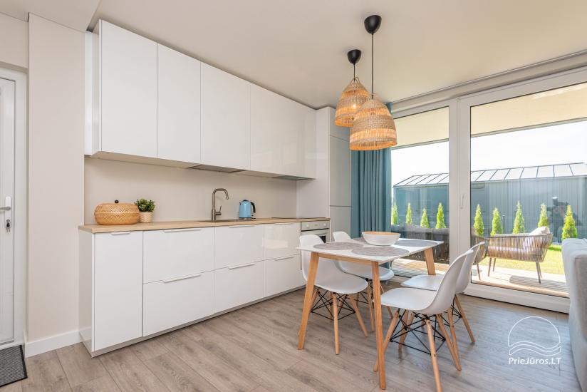 Apartamento na residência "Hill Garden". Ao mobiliar o apartamento, uma das principais considerações que tivemos foi combinar funcionalidade e estilo. O lugar é ideal tanto para um casal quanto para uma família, com um quarto separado e um sofá-cama na sala de estar que leva apenas alguns segundos para se preparar – ficamos surpresos com a facilidade de dobrar e desdobrar. Estamos ansiosos para recebê-lo em Kunigiskes, e estamos convencidos de que você ficaria ansioso para voltar!