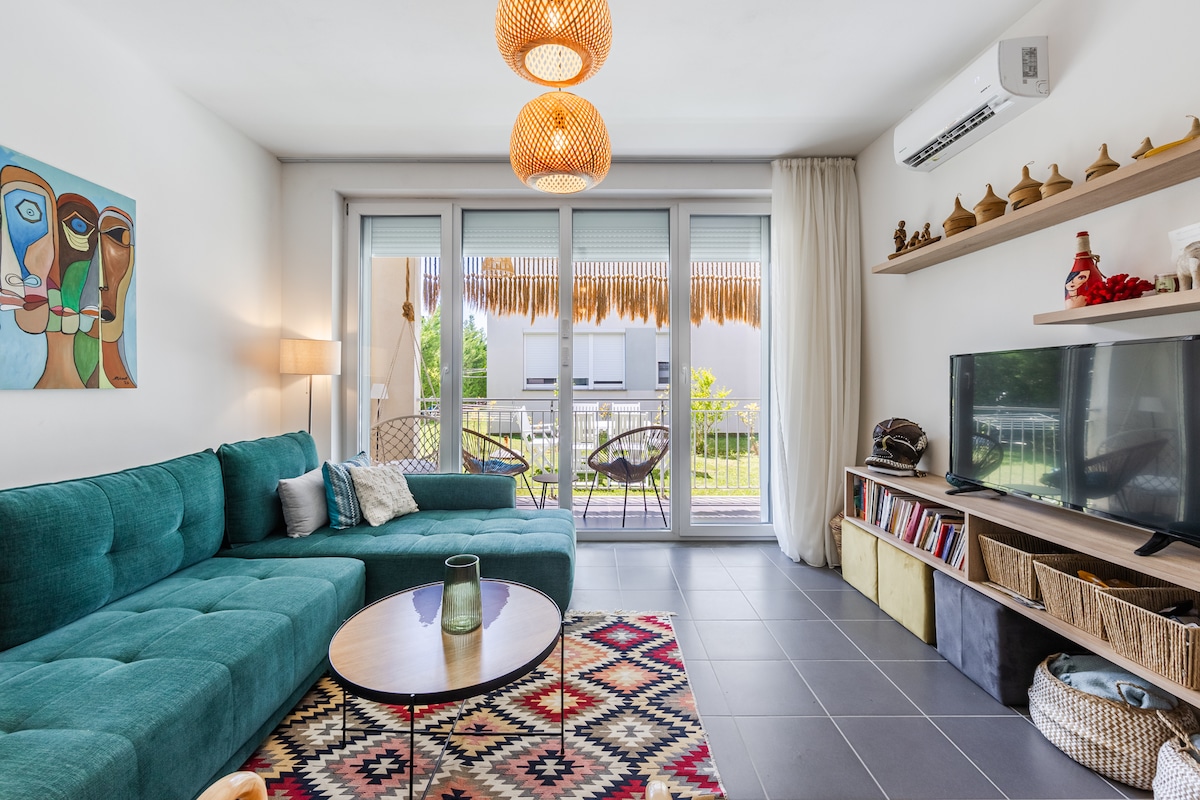 Welcome to our large, newly refurbished apartment, perfect for 1-3 guests, located on the first floor of a family house. The apartment has a private entrance and a beautiful big terrace where you can relax and enjoy the peaceful surroundings. On the ground floor lives our friendly family, and you’re welcome to enjoy our lovely garden filled with fruit trees and a charming village view from the windows. We don’t have air conditioning, but fans areprovided to keep you comfortable during your stay